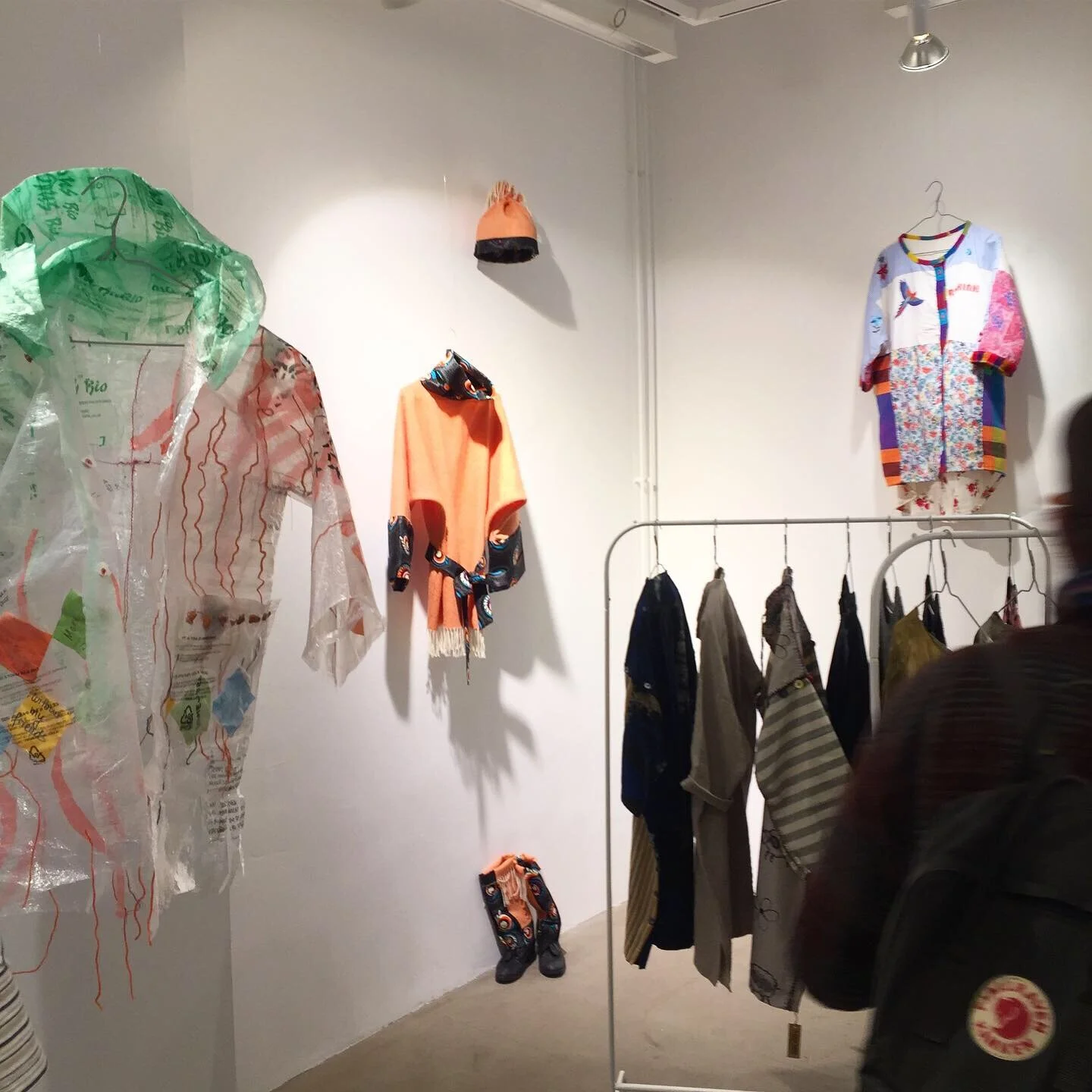 Omgjord was asked to make the costume for a dance performance in a multidisciplinary collaborative project across national borders. The focus of Omgjord's work was the black party costumes redesigned from already used jackets and skirts. With inspiration from space, 60s, captain costumes and distinctive colors and patterns, exaggerated shoulder pads with wings in African wax fabric and matching belt were added. The skirts are mainly redesigned to be dance-friendly.